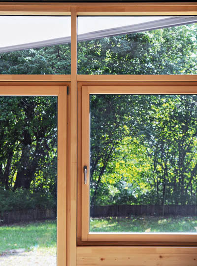 Einbau einer hochwärmegedämmten Holz-Aluminium Pfosten/Riegel Konstruktion